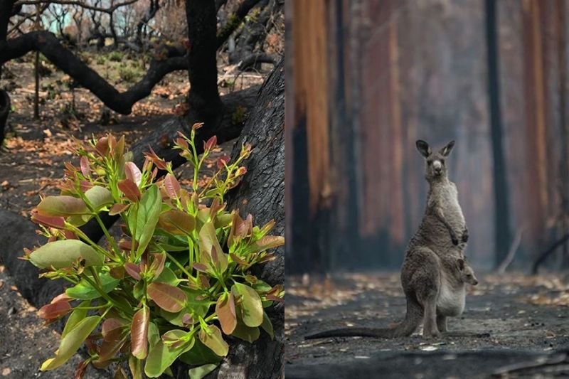 To niesamowite jak szybko natura budzi się do życia. W spalonym buszu na nowo wyrasta trawa i krzewy. Na czarnym od sadzy pustkowiu pojawia się piękna zieleń.