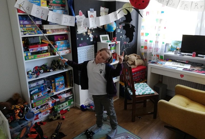 Zacząl od najprostszych rozwiązań, najpierw były więc kartki z literami rozwieszone na sznurku w pokoju Stefana. W roli wskaźnika wystąpił kij od szczotki. "Zamówiłam mu wskaźnik laserowy, żeby miał jak pokazywać literki - śmieje się Magda, jego mama.