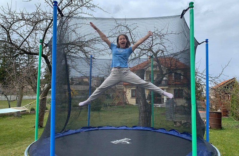 Ja ją świetnie rozumiem. Gdy nie wiem, jak sobie poradzić z izolacją podczas kwarantanny, idę biegać. Ale to dlatego, że nie mam trampoliny!
