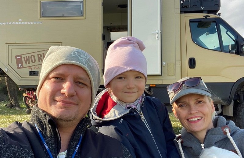 Została tylko moja firma, bo ja nadal pracuję, utrzymujemy się z mojej „jednoosobowej korporacji”. Cały proces był o wiele prostszy, niż można przypuszczać. Budowa samochodu i planowanie podróży zajęły nam 8 tysięcy godzin. Nasze auto ponad 7 merów kwadratowych powierzchni, wiec nie daliśmy rady zmieścić tam zmywarki i piekarnika, ale poza tym mamy wszystko, jak w domu. Najwięcej miejsca przeznaczamy na zabawki córki.